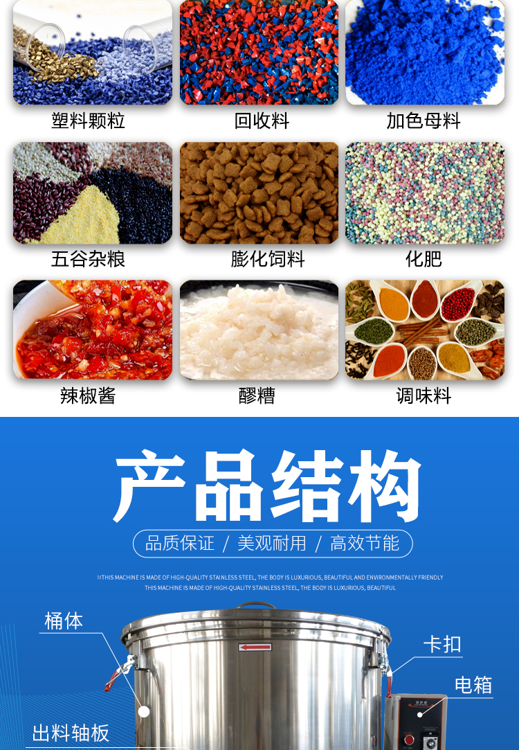 小型塑料攪拌機(jī)立式混色機(jī)不銹鋼塑料拌料機(jī)整機(jī)不銹鋼制作